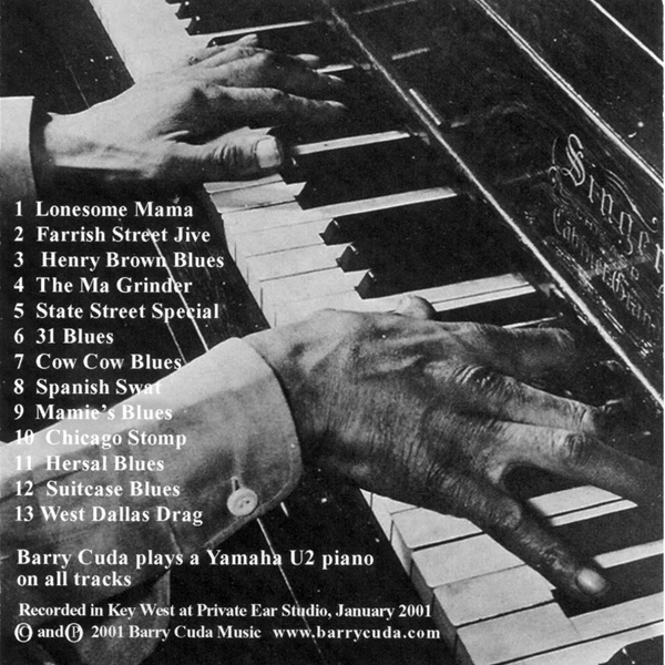 Barry Cuda (2001) Solo instrumental rare early blues piano pieces. Many fellow musicians say this is my masterpiece. Less is more. Very ambient.